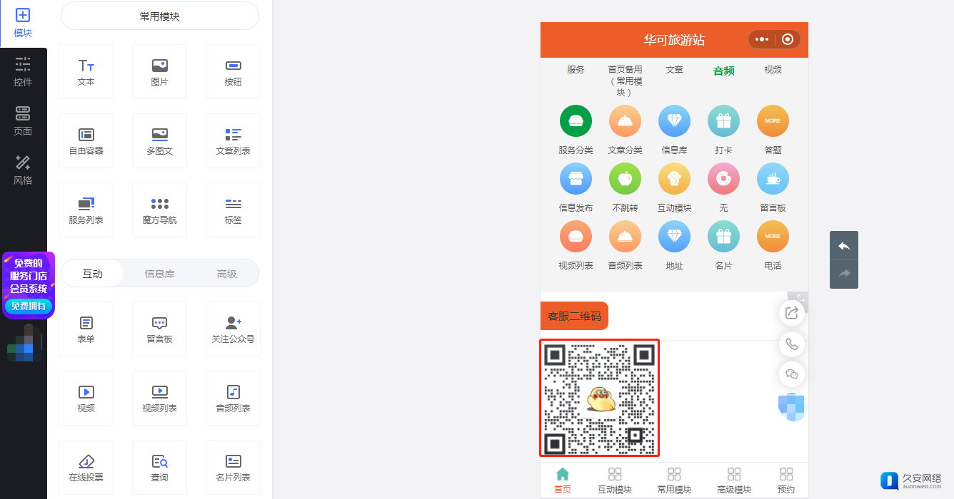 2. 上传成功后,二维码就会出现在设计器中。(需要注意的是如果图片要添加文字描述的话,不能通过利诱等方式诱导用户添加好友或者加入群聊。)长按二维码即可识别名片。