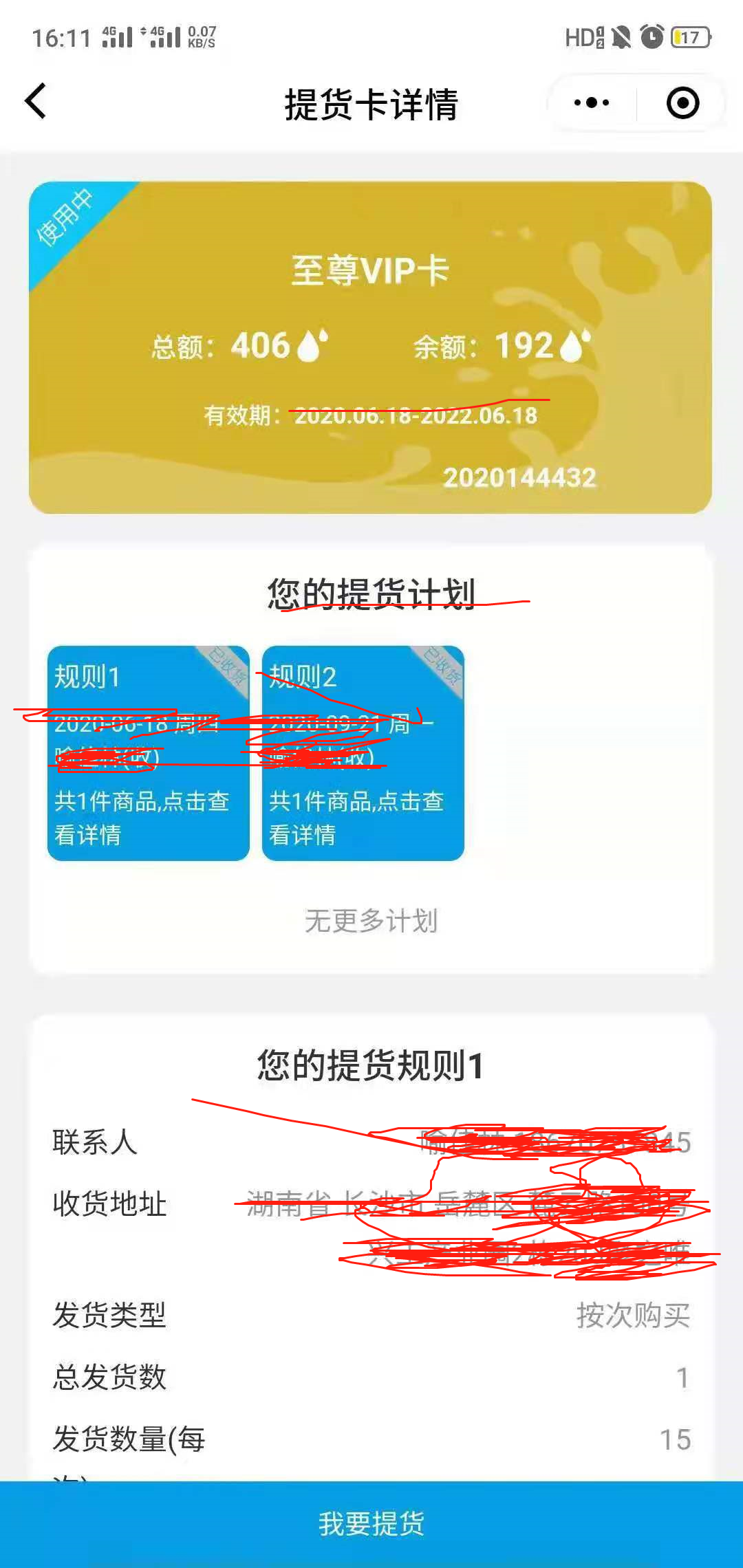 提货计划创建完,用户提货卡的产品总量便对应减少。