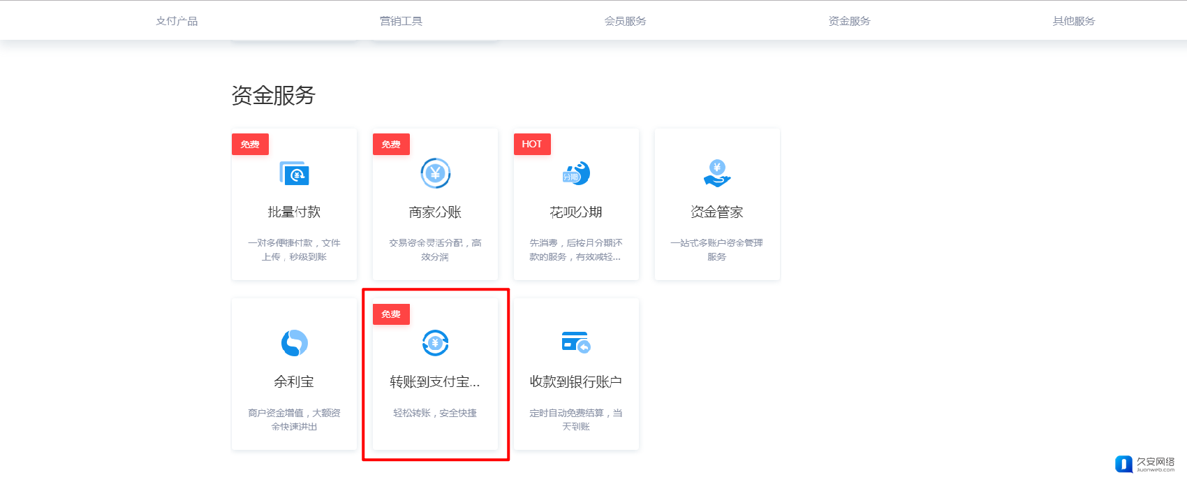 点击进入“我的商家服务”,在这一步操作中请务必确保商户号内有充足的可用余额,如余额不足的话,请及时充值。