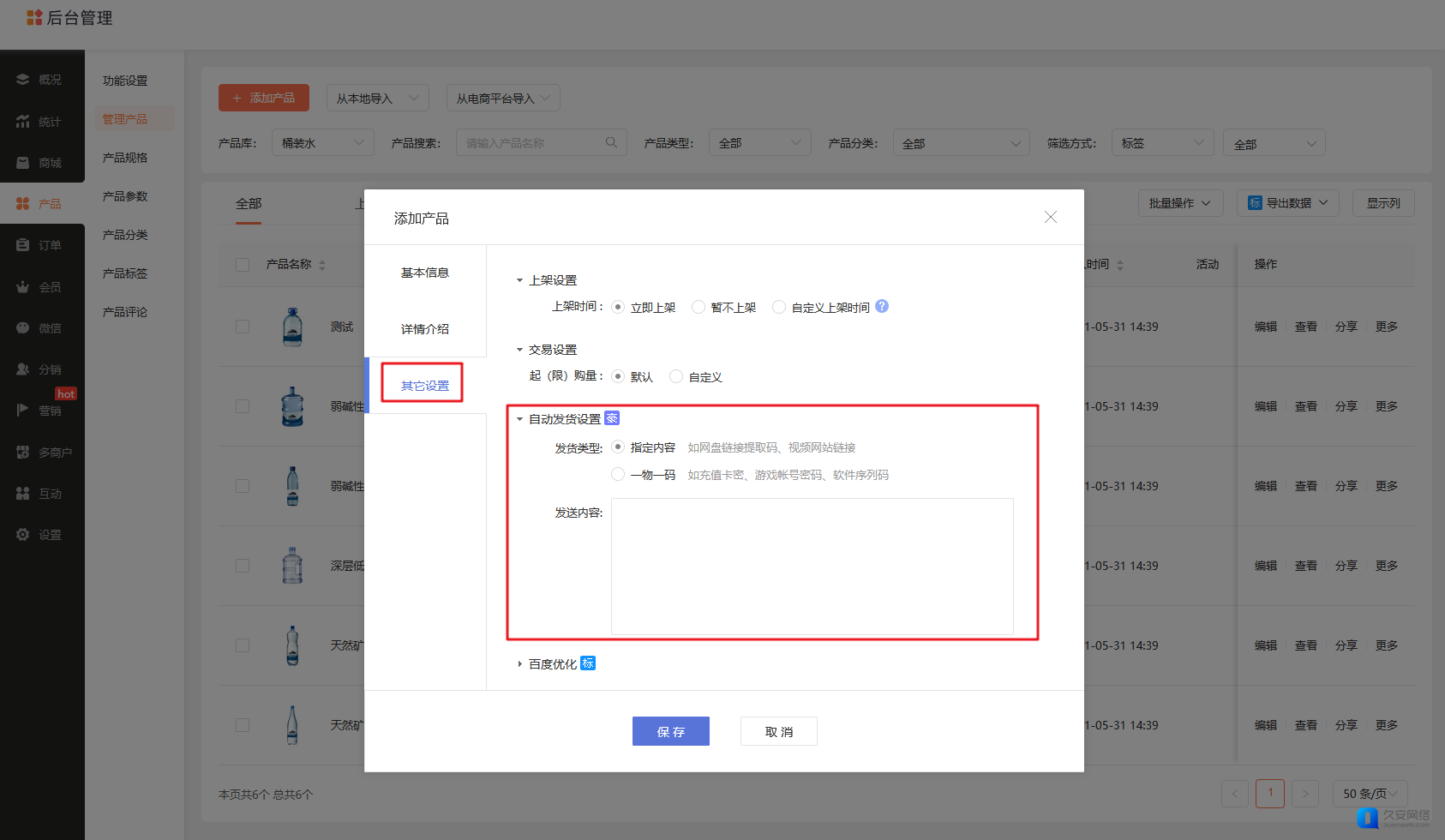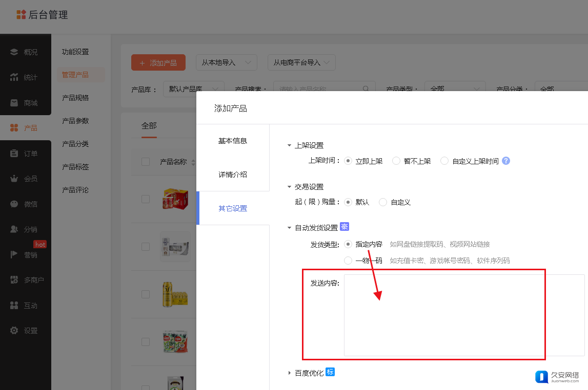 ① 无需物流,轻松实现自动发货:添加产品时可设置自动发货内容。买家购买后,系统将自动发货。