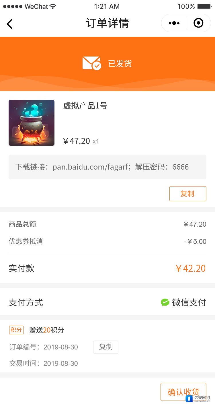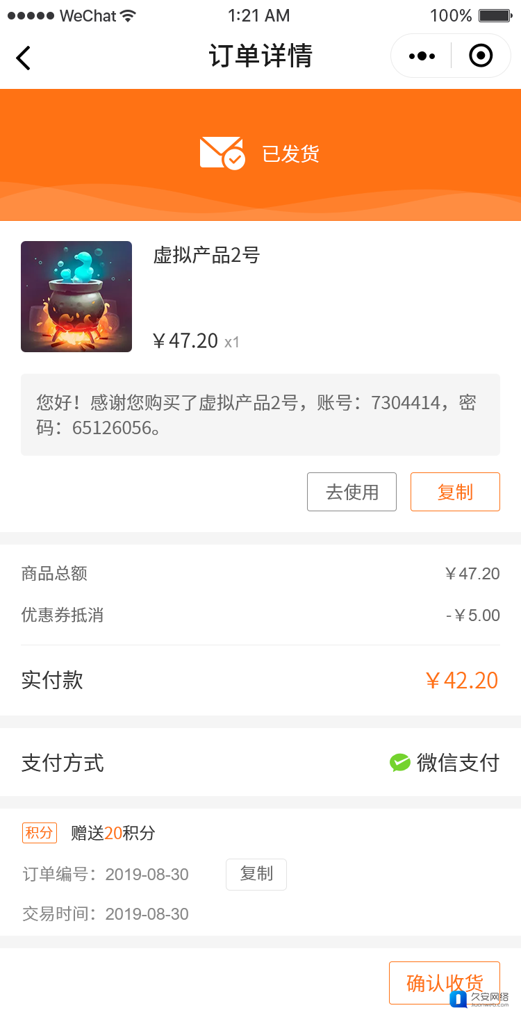 发货后用户订单界面如下: