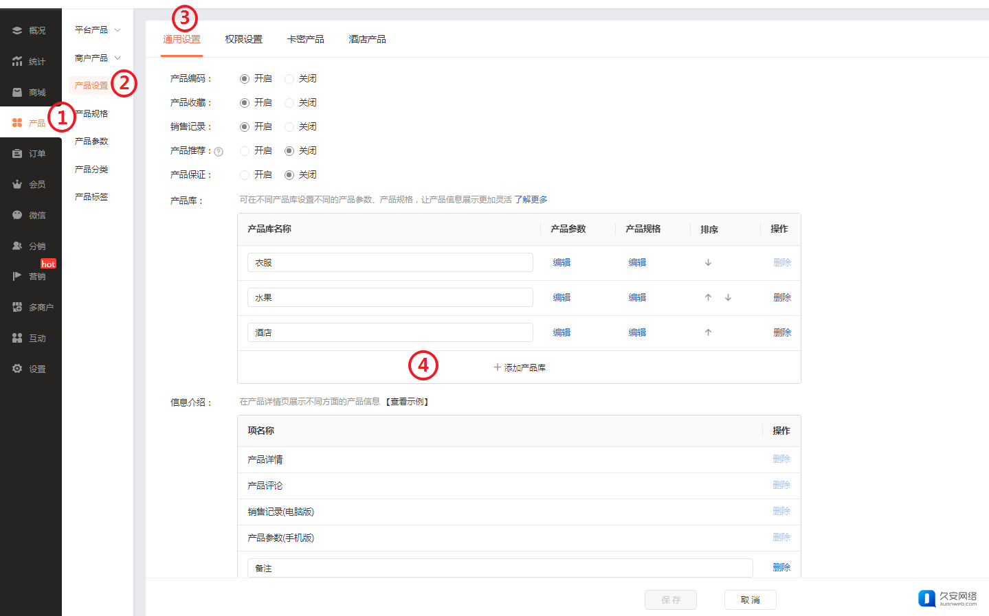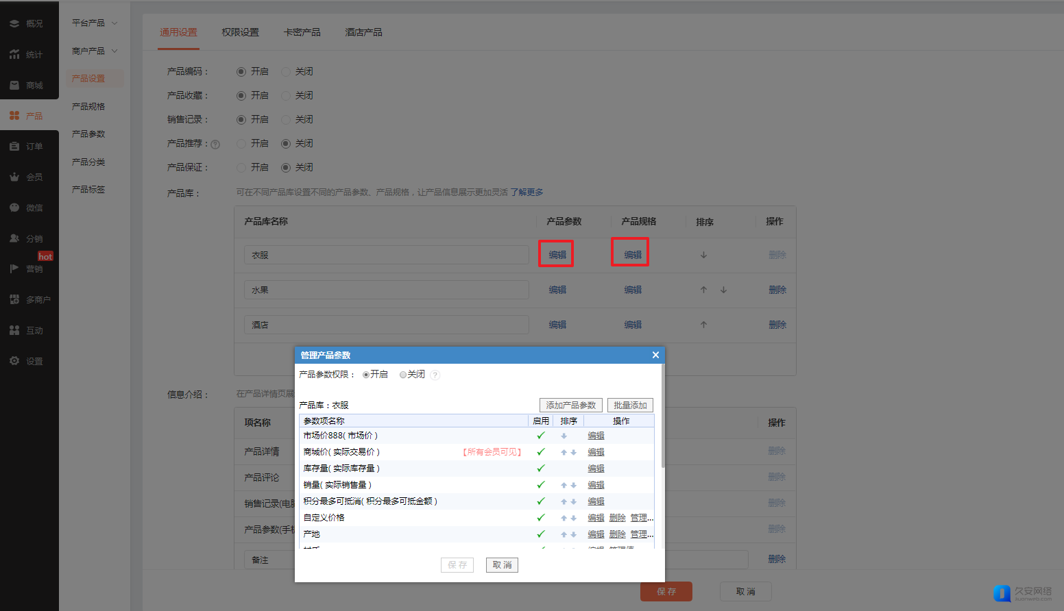 2. 为不同的产品库设置不同的产品参数和购物选项