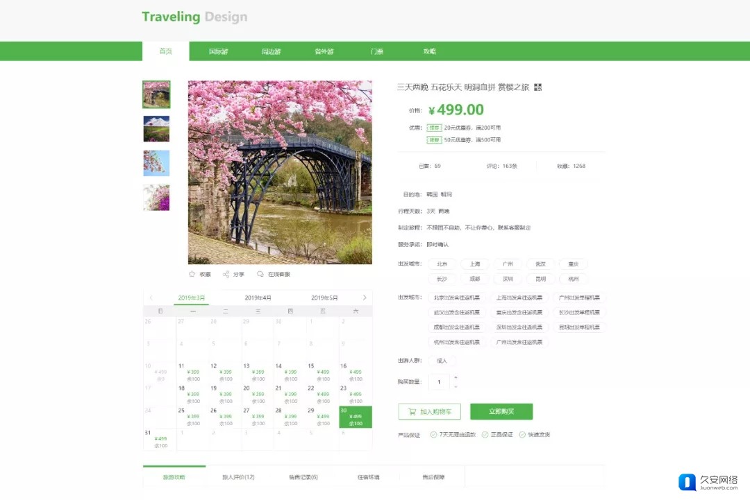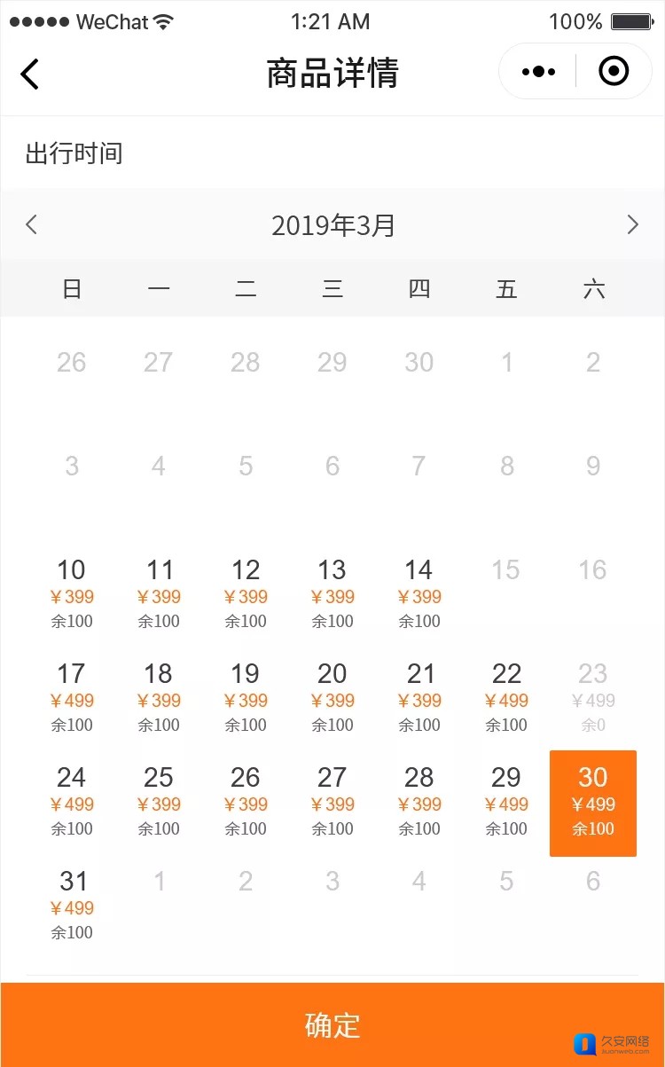 在设置好价格库存日历后,买家即可选择指定的日期进行购买。
