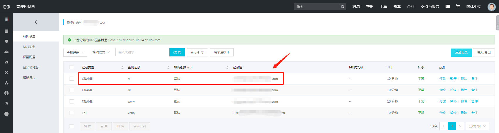 2. 添加TXT记录值到第三方域名服务商,然后返回网站管理后台输入要绑定的域名,点击检测并绑定。