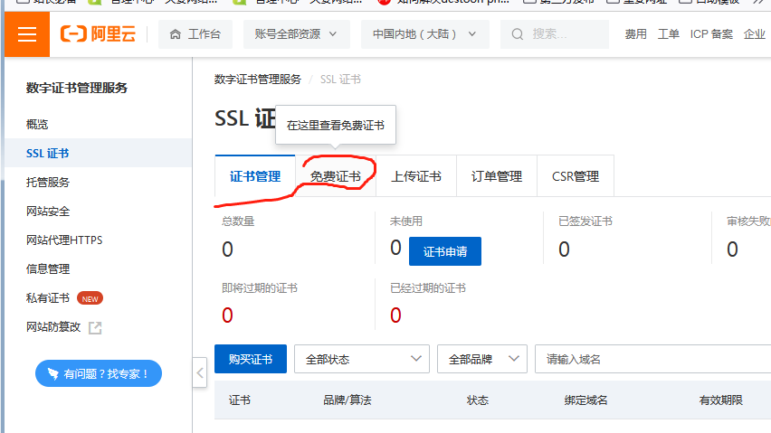 4,点击免费证书如下图。