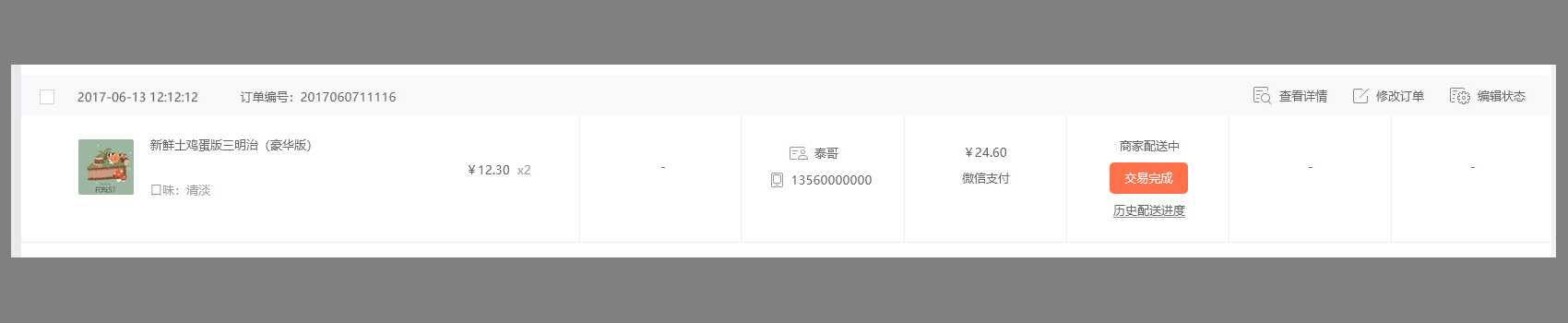 在买家确认收货后,商家可以将订单流转至【交易完成】,完成交易。
