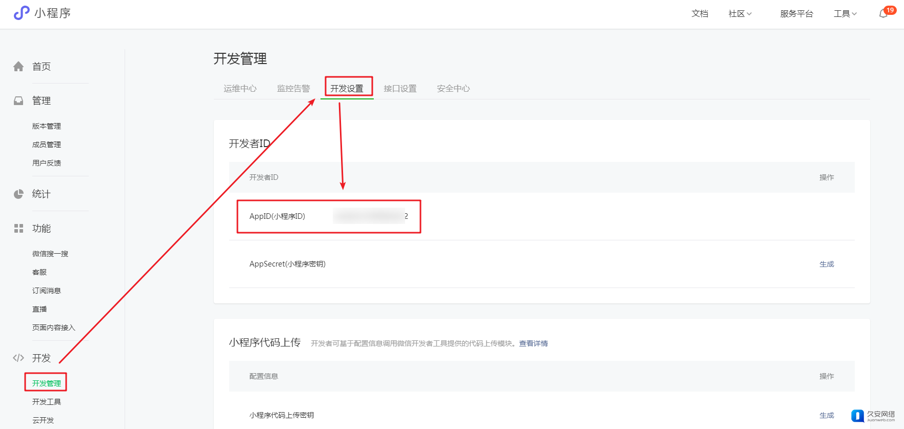 登录【微信公众平台https://mp.weixin.qq.com/】,点击【开发-开发管理-开发设置】,即可快速获取AppID。