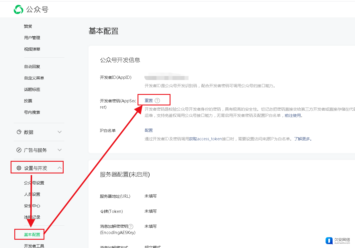 2.3 “已认证服务号”或“已认证订阅号(仅支持政府和媒体类型)”的APPID,可进入【微信公众号后台-开发-基本配置】中获取。