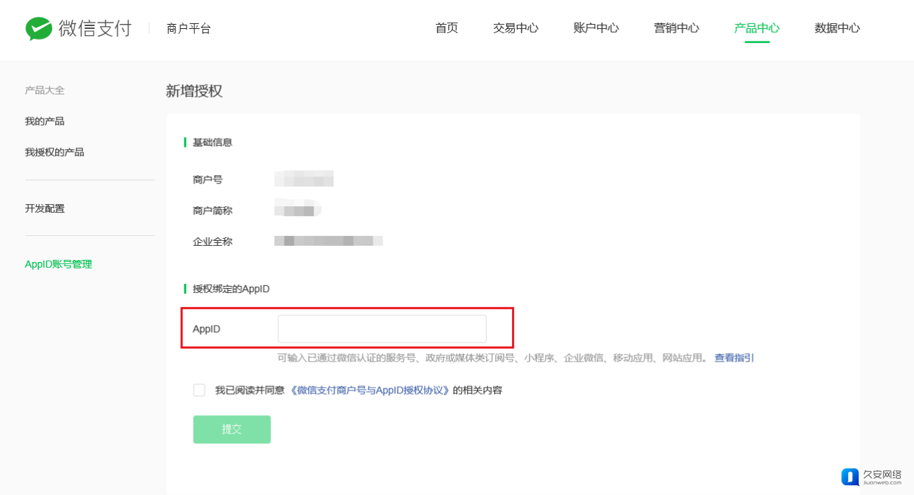 (操作流程与上边方法一致,如对操作有疑问,可点击查看官方文档《APPID授权管理功能介绍》)