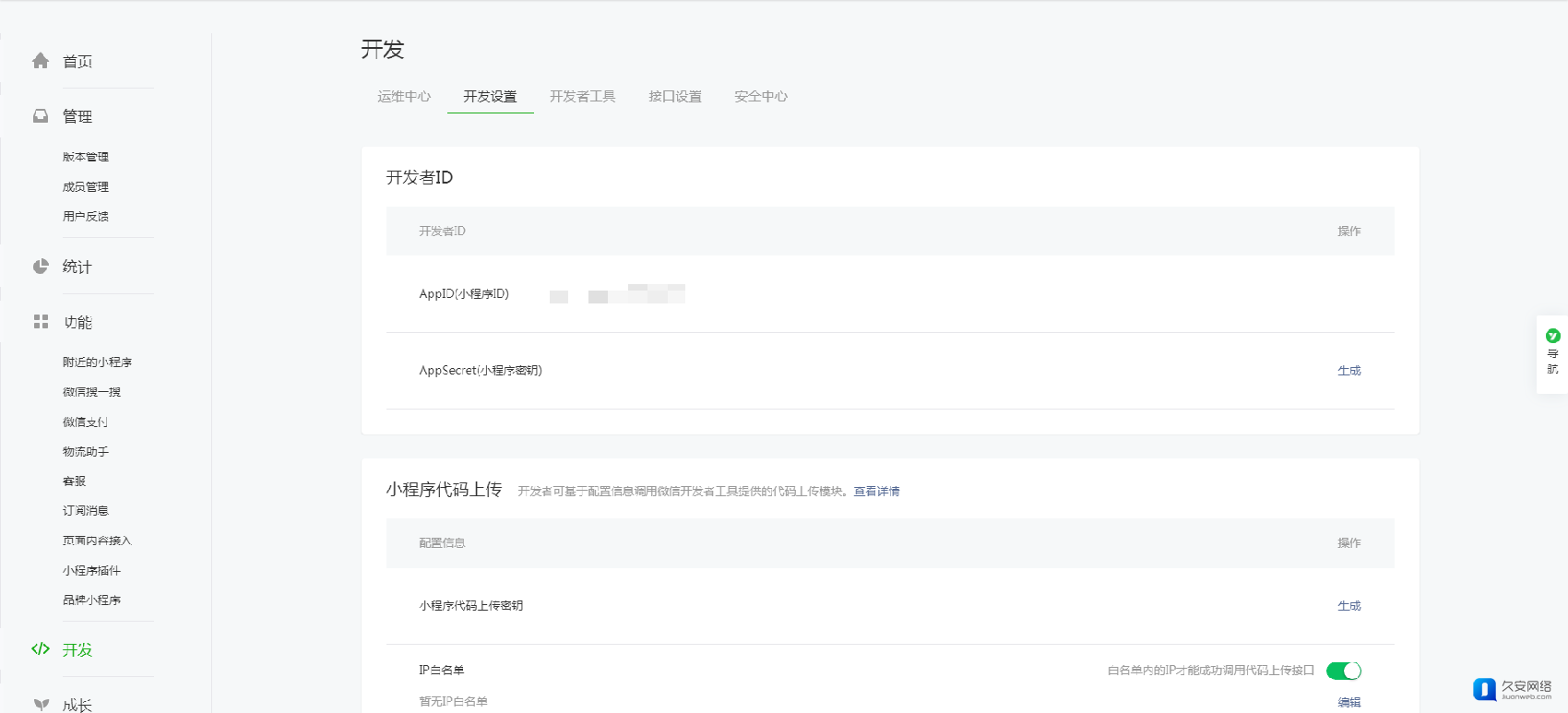 小程序的APPID可以通过进入【微信小程序后台-开发-开发设置-开发者ID】获取。
