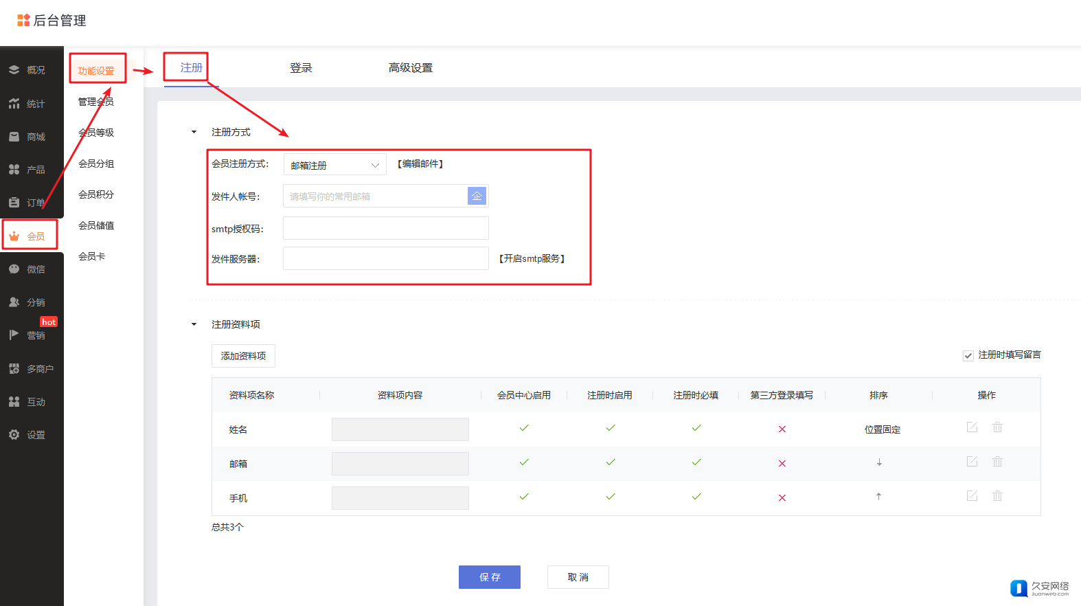 邮箱注册功能任意版本均可设置