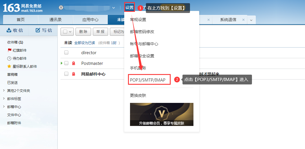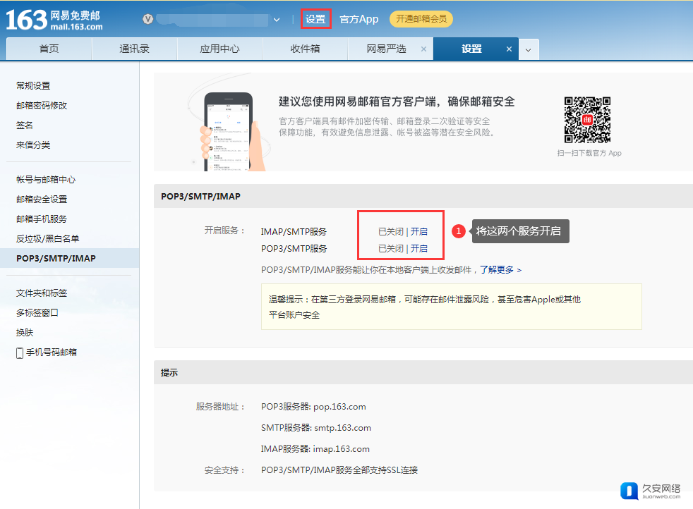 点击【设置-POP3/SMTP/IMAP】进入开启服务页面。