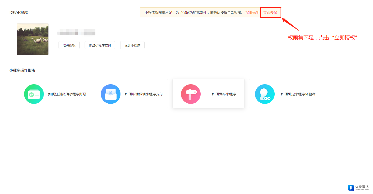 1. 客户需要先检查小程序是否已完全授权,并将“连接器电商场景接入”权限集授权给商城。