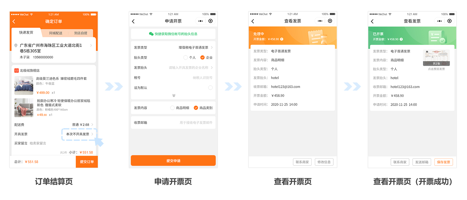 买家下单时申请开发票,方便又高效,轻松提升商家运营效率。