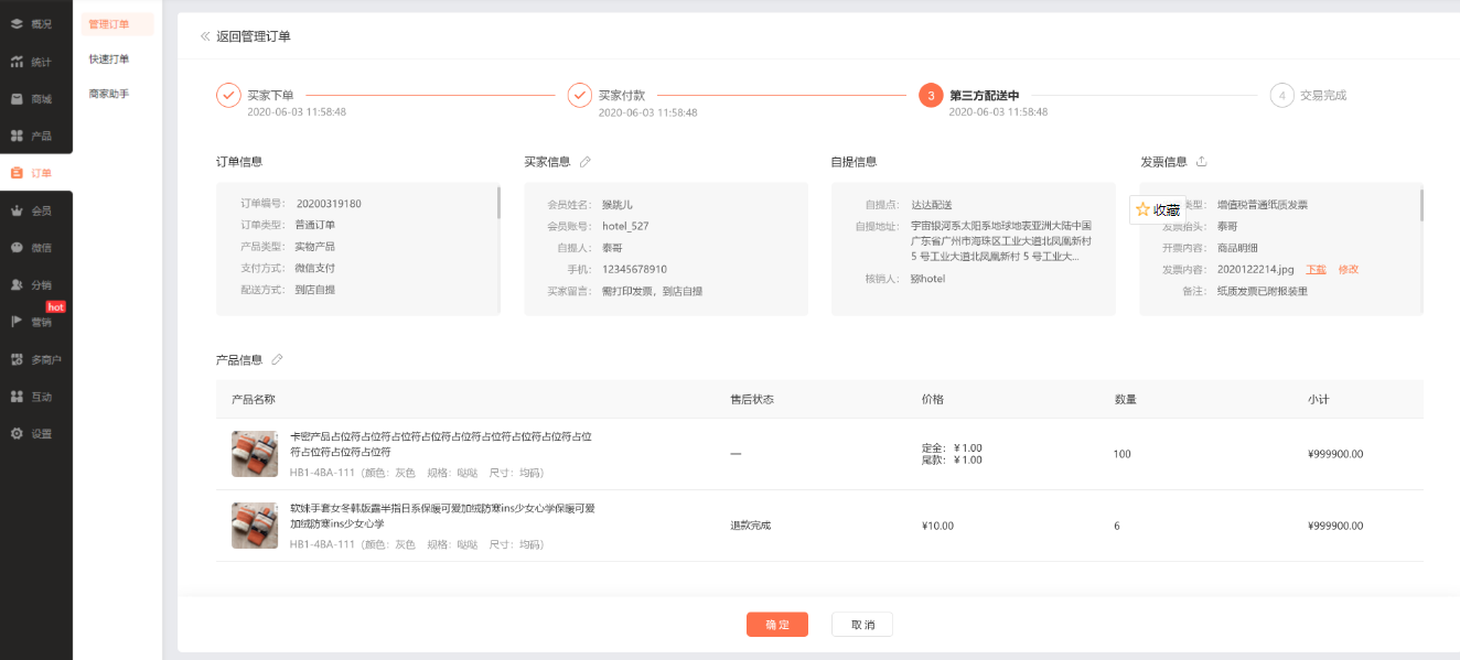 在订单管理处,商家也可查看到该订单的发票信息,快捷了解订单发票信息。