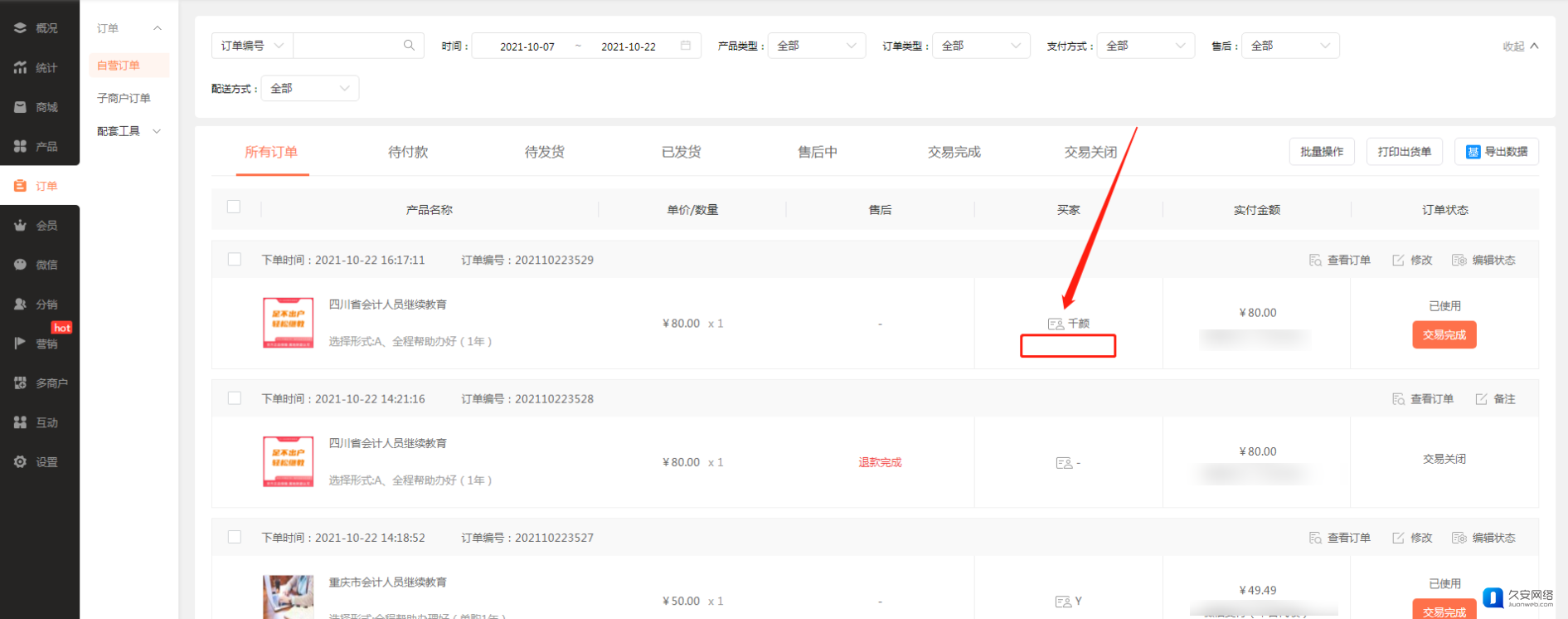 【版本】任意版本可管理订单,导出数据需商城标准版及以上