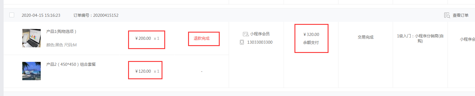 Q:同一个订单购买了多个产品,其中一个产品退款,订单总价会变化吗?