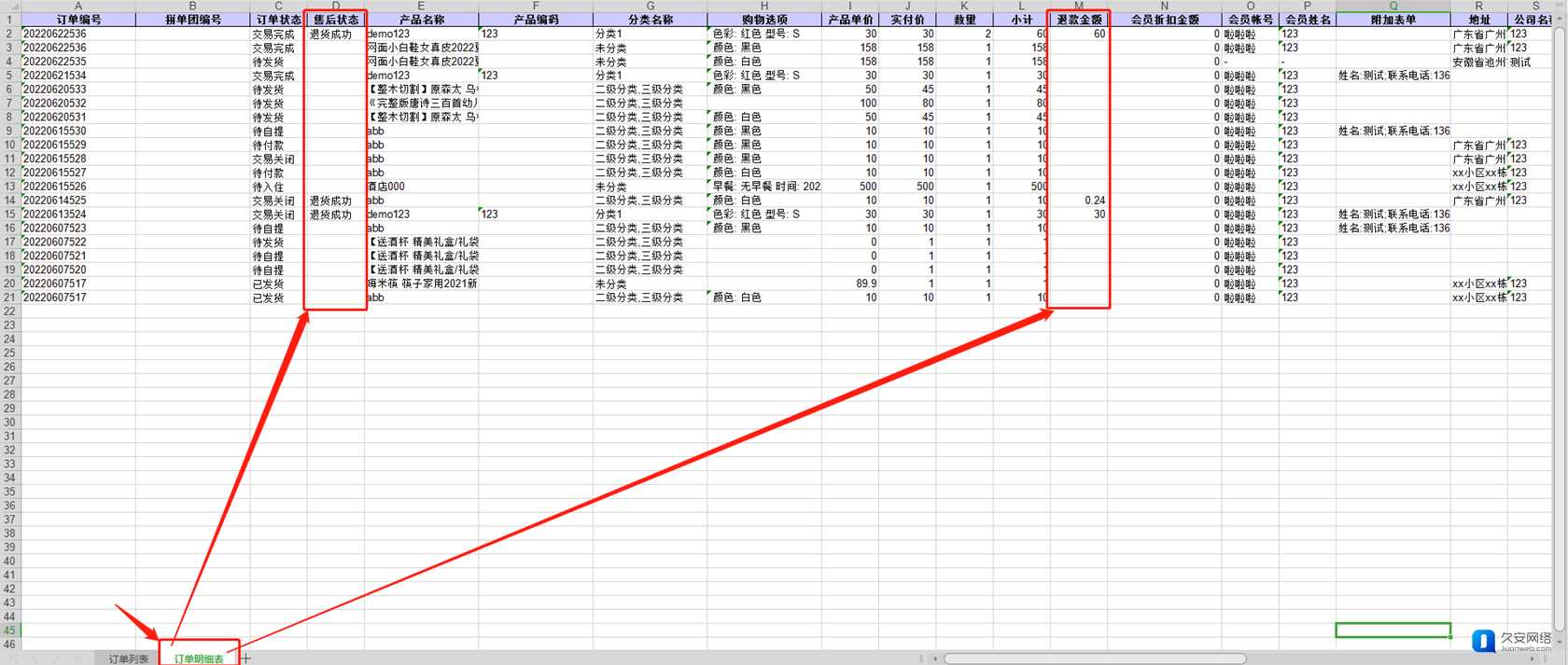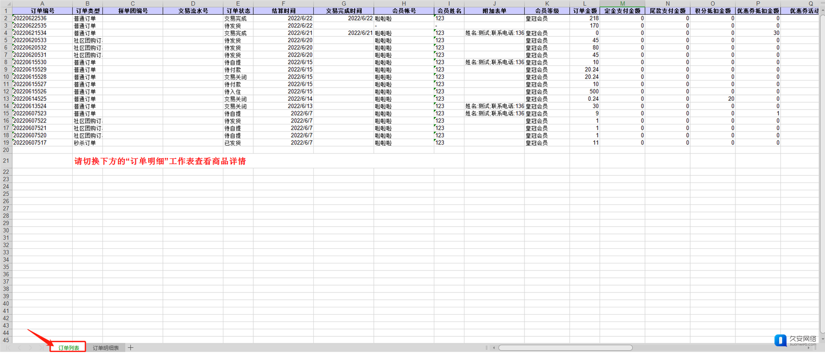 ③ 可通过“订单金额”列数据核对订单实际付款情况。