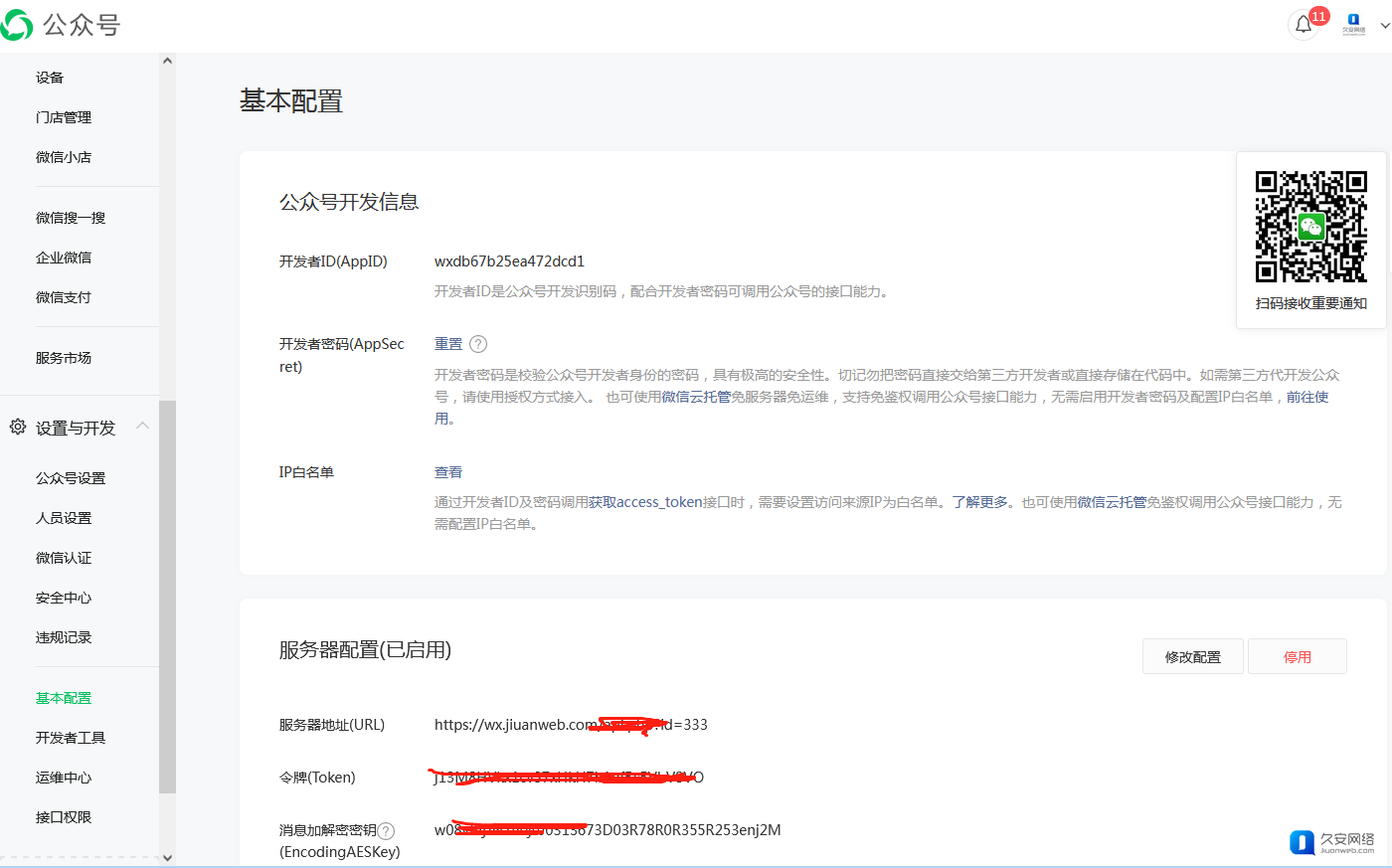 首先我们需要登录微信公众号,进入到“开发-基本设置”中。