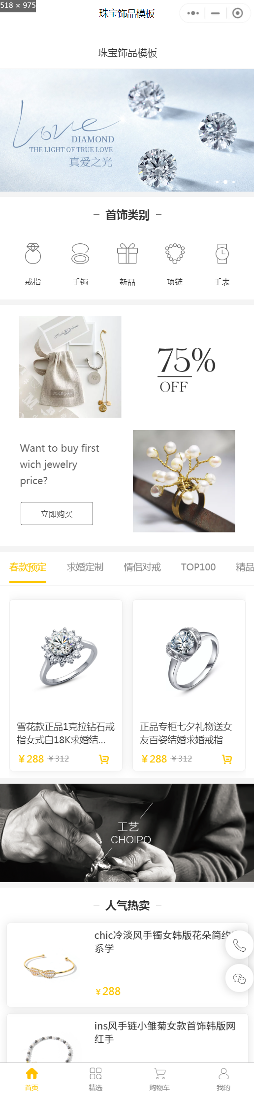 珠宝玉石-珠宝饰品-龙凤珠宝小程序模板 ,我们是由设计师创立的珠宝品牌,打造不贵价不沉重,但是同样精致的时尚珠宝。这个 是我们一贯坚持的设计理念。每一个系列的背后都讲述着一个浪漫美好的故事,珠宝不 再是器物,而是传递情感与共鸣的载体。