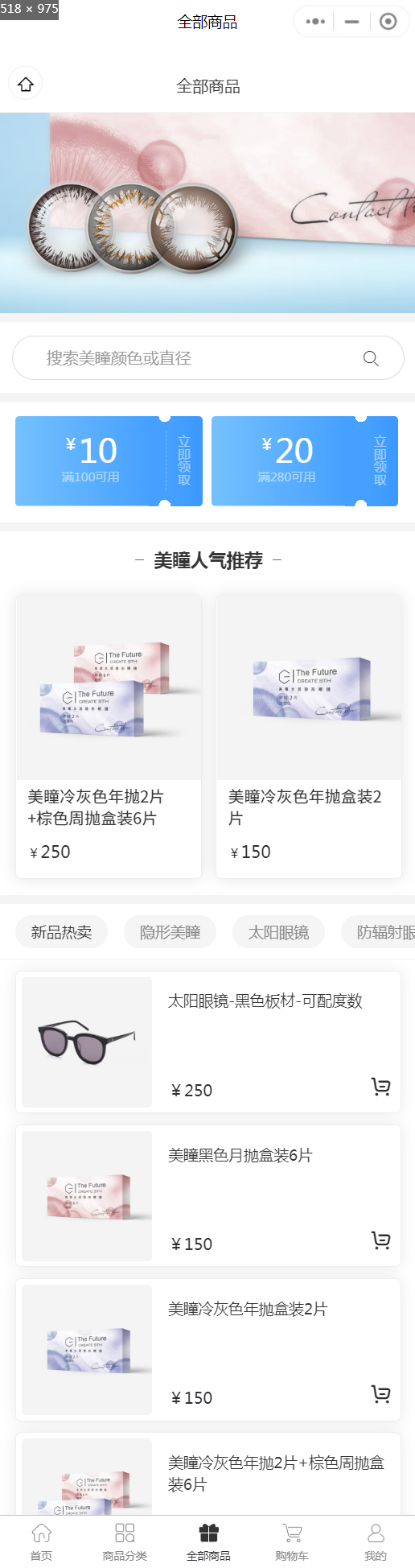 隐形眼镜-隐形眼镜代理小程序商城模板