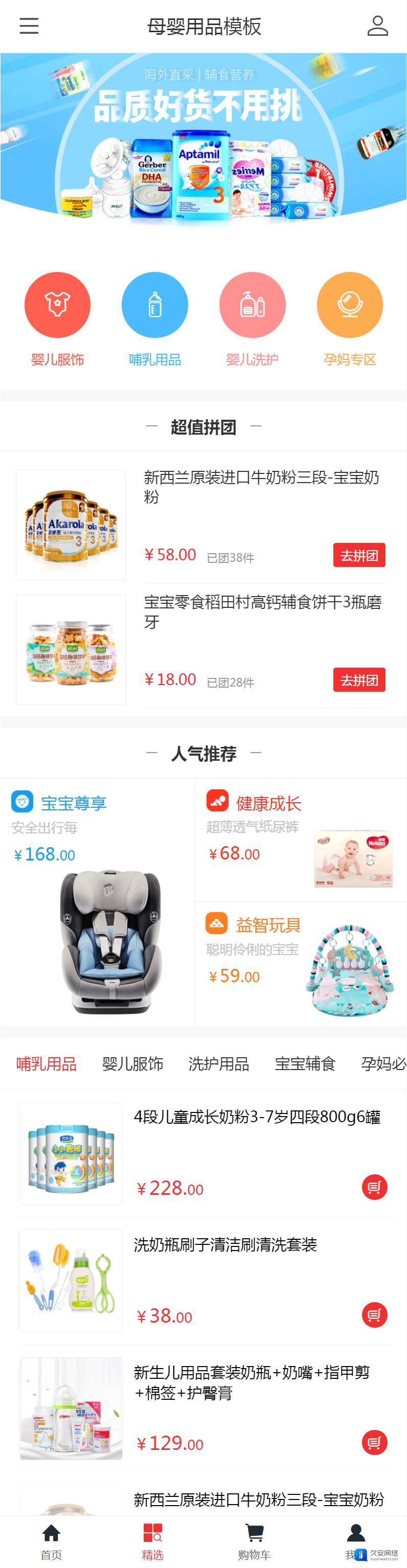 宝宝辅食_儿童空调被_婴儿沐浴露微商网店模板 ,母婴用品商城小程序的开发主要基于微信小程序,让用户更容易、更方便地获取自己的职能。他们只需要通过微信跳转即可完成,用户便可以利用碎片化时间进行商城的使用,即及时又高效。因此,对于提高用户粘性、培养高粘性用户群起到重要作用。同时,其易于传播、即用型的特点,让用户操作起来更加方便。