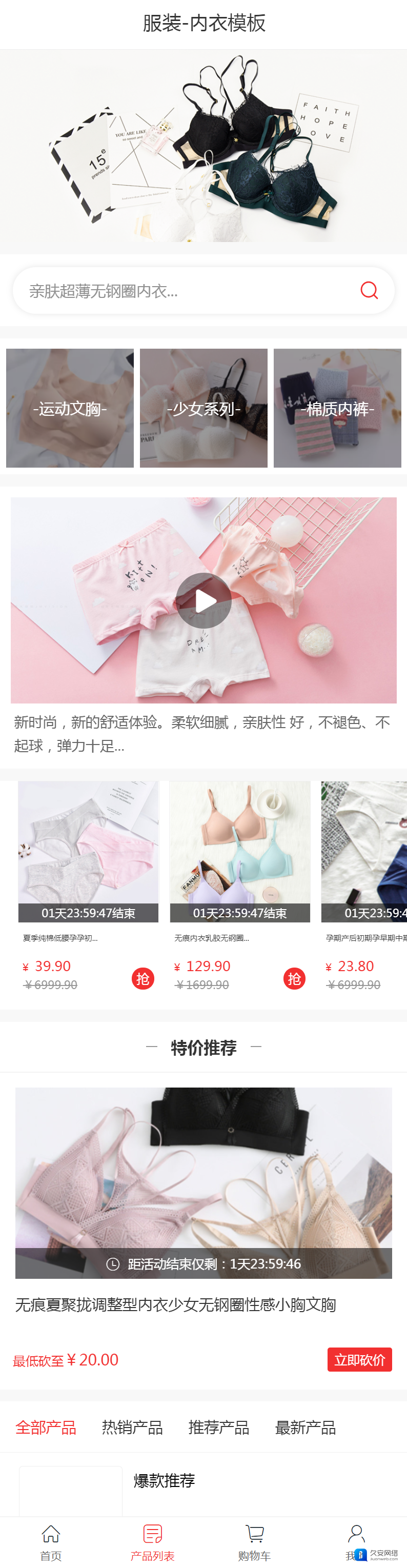 文胸_少女内衣_运动内容网店网上商城模板 ,网上购物十分方便,物品种类十分丰富,更重要的是价格更加便宜。因为网上购买衣服具有这么多的好处,因此已经成为了一种时尚。因此在网上卖衣服,不仅客户多,而且过程不复杂,潜力很好,参考前瞻 产业研究院《2016-2021年中国服装行业电子商务发展模式与投资战略规划分析报告》显示,近来,电商已经成为服装产品销售最具成长性的渠道之一,也是未来服装产业发展的必然趋势。在如今服装批发市场的特定地理环境和条件下,互联网在服装销售行业的应用前景向好。