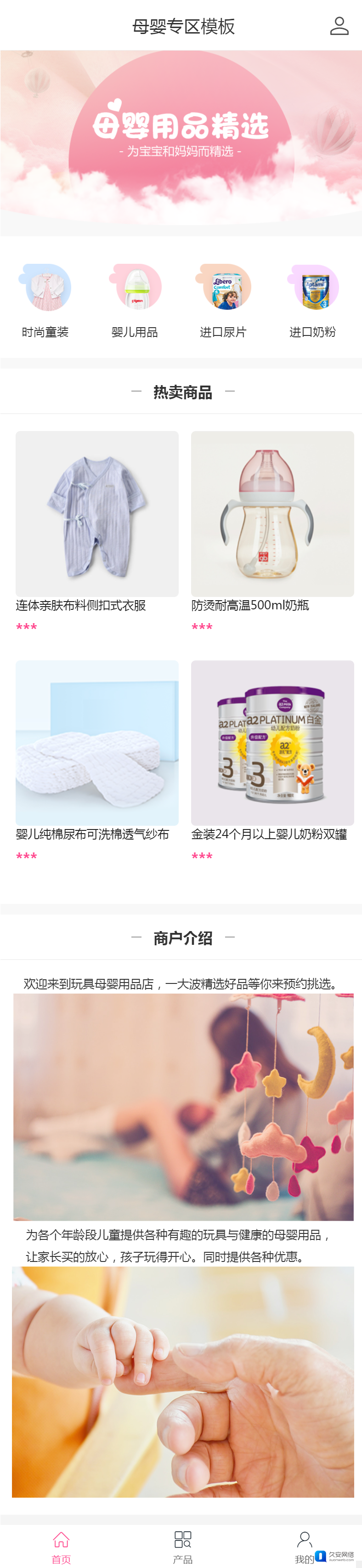 母婴专区优质官网微商城模板 ,欢迎来到玩具母婴用品店,一大波精选好品等你来预约挑选。我们为各个年龄段儿童提供各种有趣的玩具与健康的母婴用品, 让家长买的放心,孩子玩得开心。同时提供各种优惠。只需要通过微信跳转即可完成,用户便可以利用碎片化时间进行商城的使用,即及时又高效。