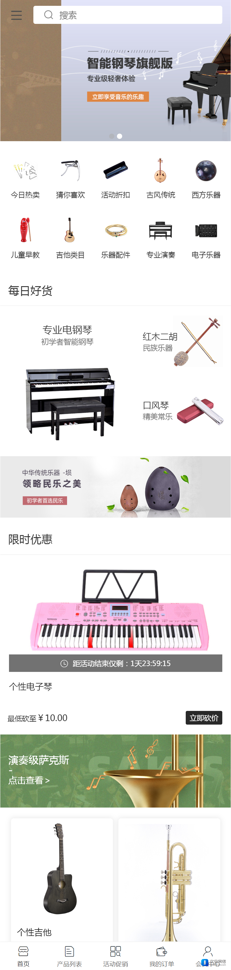 乐器专卖店_古代乐器网店网上微商城模板 ,近几年人们生活水平进步,自然期望能够使用空闲时刻学习一项技术,学习乐器自然成为了大部分用户的首选,毕竟相较于其他技术而言,乐器学习难度并不高,而且适用于各个年龄的用户,但要想学好乐器,购买好器件十分重要,乐器电商微商城开发则支持用户在线购买乐器产品